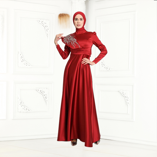 Yoğun kırmızı tonu ve göz alıcı detaylarıyla öne çıkan Gülrânâ Abiye, ihtişamlı davetlerin vazgeçilmezi. Vücudu saran modern kesimiyle hem romantik hem güçlü bir stil yaratır.