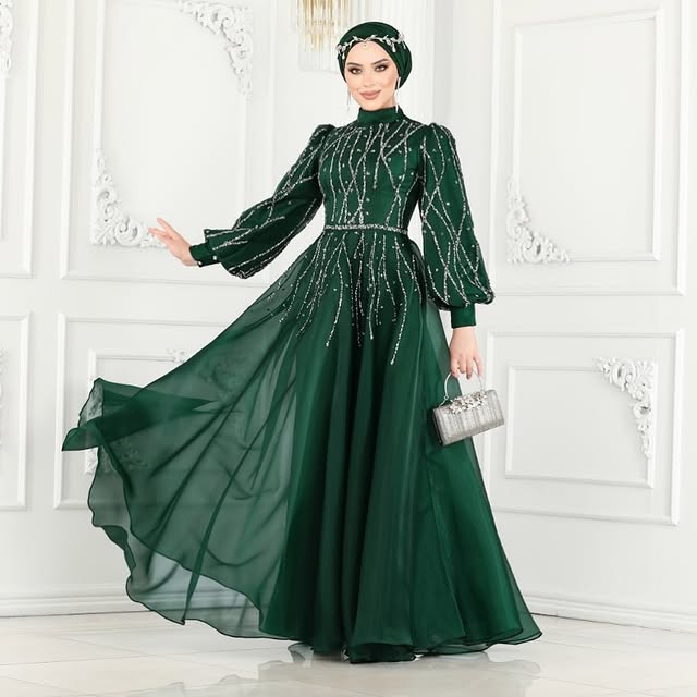Zeytin yeşilinin modern tonu ve zarif işleme detaylarıyla öne çıkan Nîval Abiye, hem gündüz hem gece davetlerinde asil bir duruş sergiler.